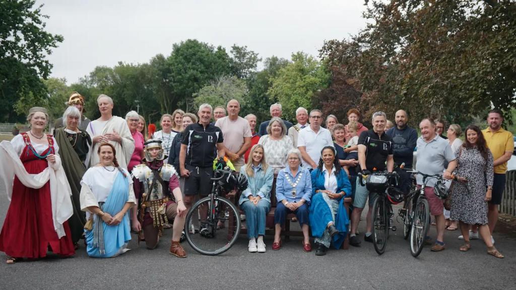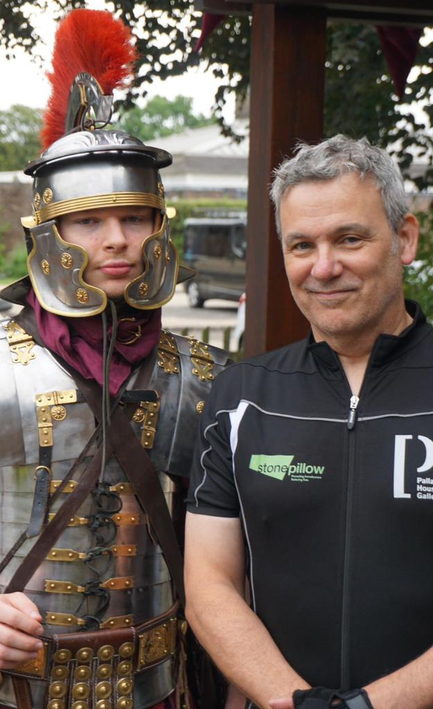 Arriving at Fishbourne Roman Palace on our bicycles, we were greeted by Roman soldiers, citizens and high status individuals who might have been wealthy merchants or senators. It was great to see and really striking to see. There were also members of the charities there, the local MP and the Mayor, as well as a couple of members of the family of the Duke of Richmond, as the family had been firm supporters of the cause since Stonepillow started. It was a great atmosphere of support and good humour. I was gifted a ‘Roman’ coin by a Roman soldier and now see it as a token of good luck.