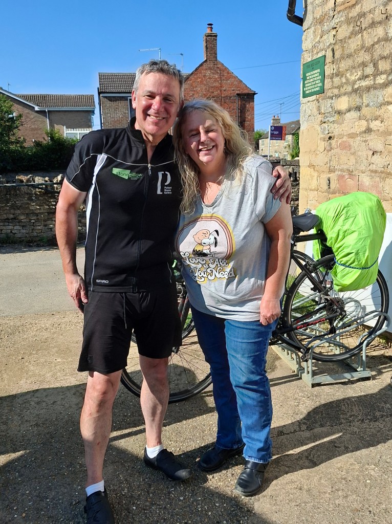 Emma Stutz, an old university friend who I haven’t seen in person for over three decades, heard about the challenge and because we were going so close to her, we arranged to meet both Emma and her partner, David, not far from Stamford in a little village called West Deeping. Komoot had other ideas. Keeping us safe from that busy B-road, we were led through estates for half-a-mile to return to the busy B-road about 200 yards from where we had left it. Keeping us safe from that busy B-road, she then led us on a massive right-angle through the countryside to return to the busy B-road a quarter-of-a-mile from where we had left it.